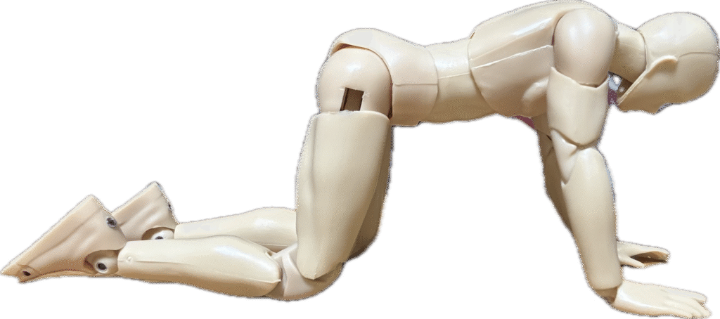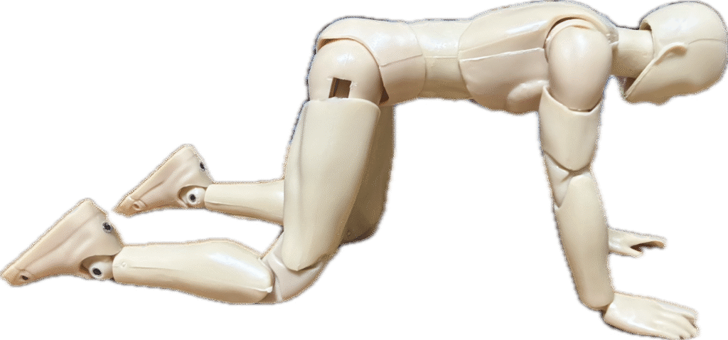 この姿勢を保つことで、体幹が安定し、手足の動きがブレなくなります。